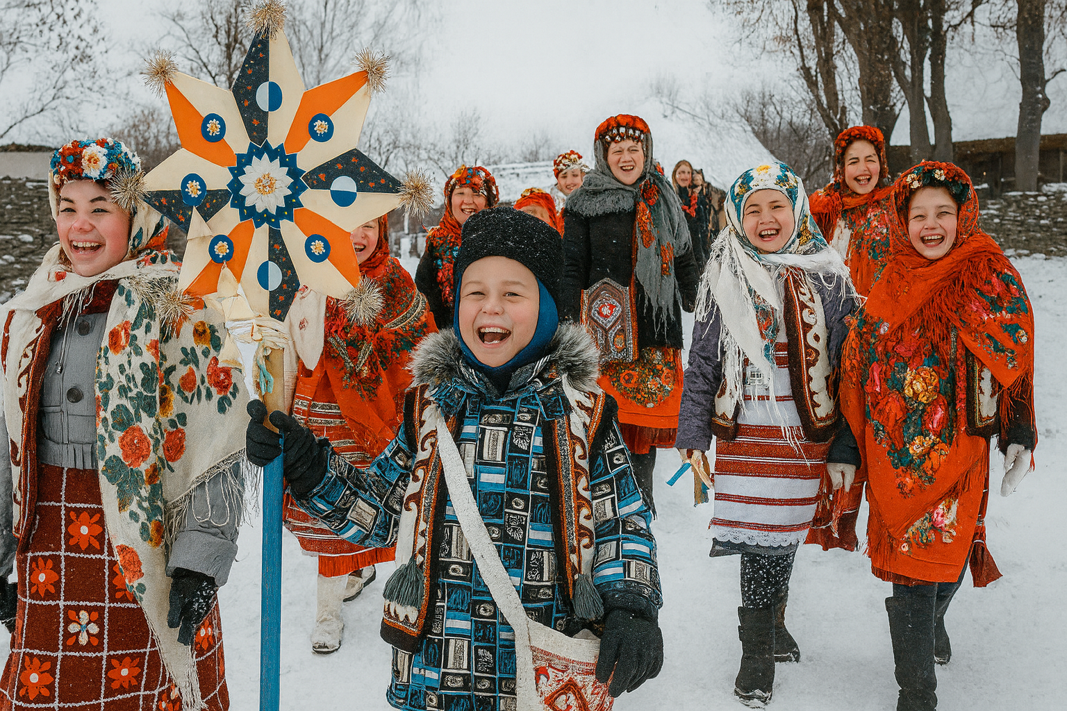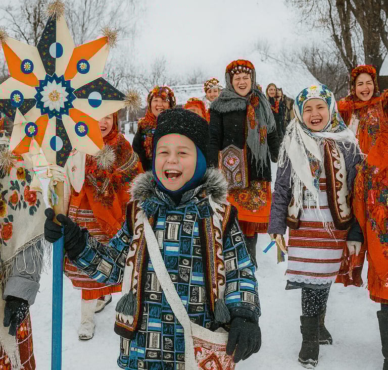 The Коля́дки (kolyadky, Ukrainian Christmas songs) form one of the most enduring and joyful expressions of Ukrainian winter traditions. Rooted in ancient pagan rituals and later adapted into Christian celebrations, these carols are sung during the Різдво Христове (Rizdvo Khrystove, Christmas) season, particularly from January 6 to 19, according to the Julian calendar. The Коля́дки celebrate the birth of Christ while preserving symbols of fertility, light, and renewal from pre-Christian agrarian culture. Performed by groups of колядники (kolyadnyky, carolers), they combine music, costume, and ritual, uniting entire communities in festive harmony.